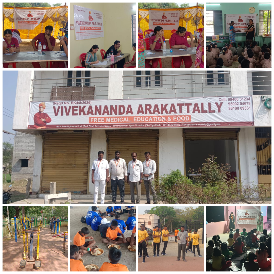 Vivekananda Arakattally is working to support poor and underprivileged people through free education, medical camps, food distribution and skill training. Our goal is to help society grow stronger through kindness and service.